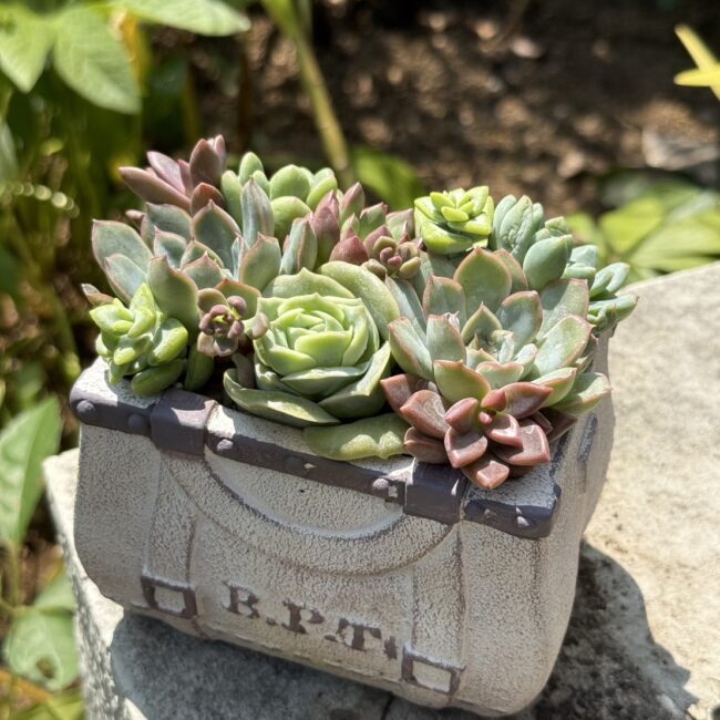 寄せ植えやモルタルアートなど、生徒さん一人ひとりの手から生まれる、心あたたまる作品をご紹介します。