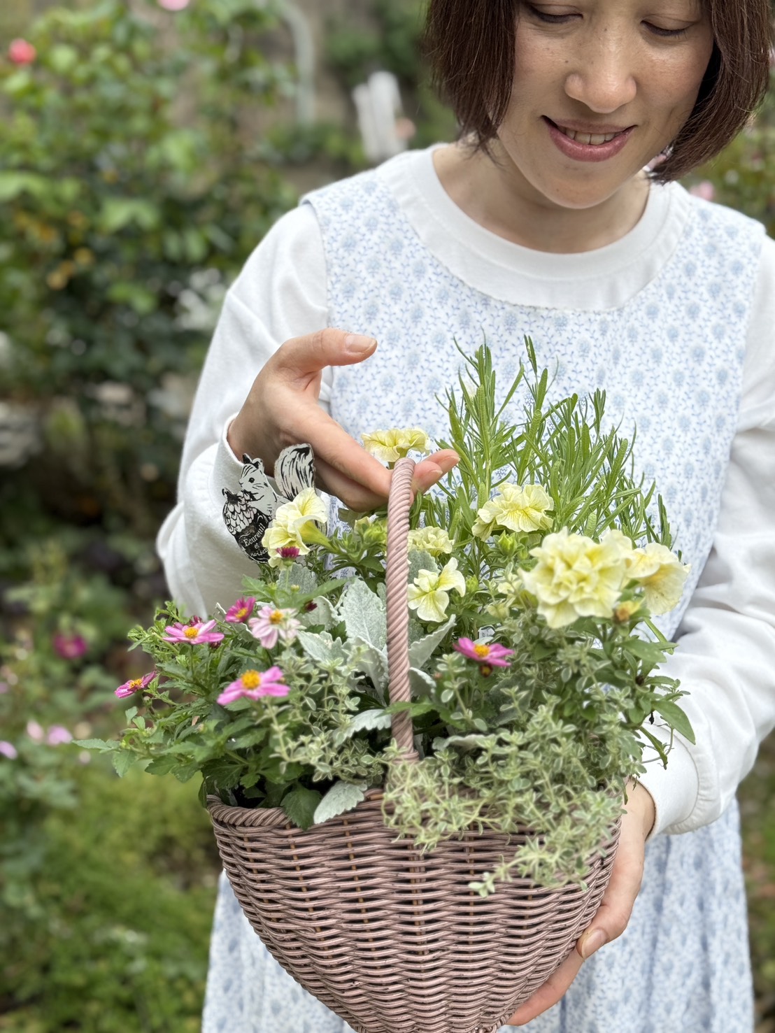 ギャザリング初体験で、レッスン前は上手くイメージできなかったけど、レッスンしてみて、切り花のブーケと寄せ植のいいとこ取りだなって思いました。 ブーケのように華やかだけど、根がついているから、すぐに枯れてしまうこともなく、成長を見守りながら長く楽しめると思うと嬉しいです。 (のぶこさん) お客様の声一覧