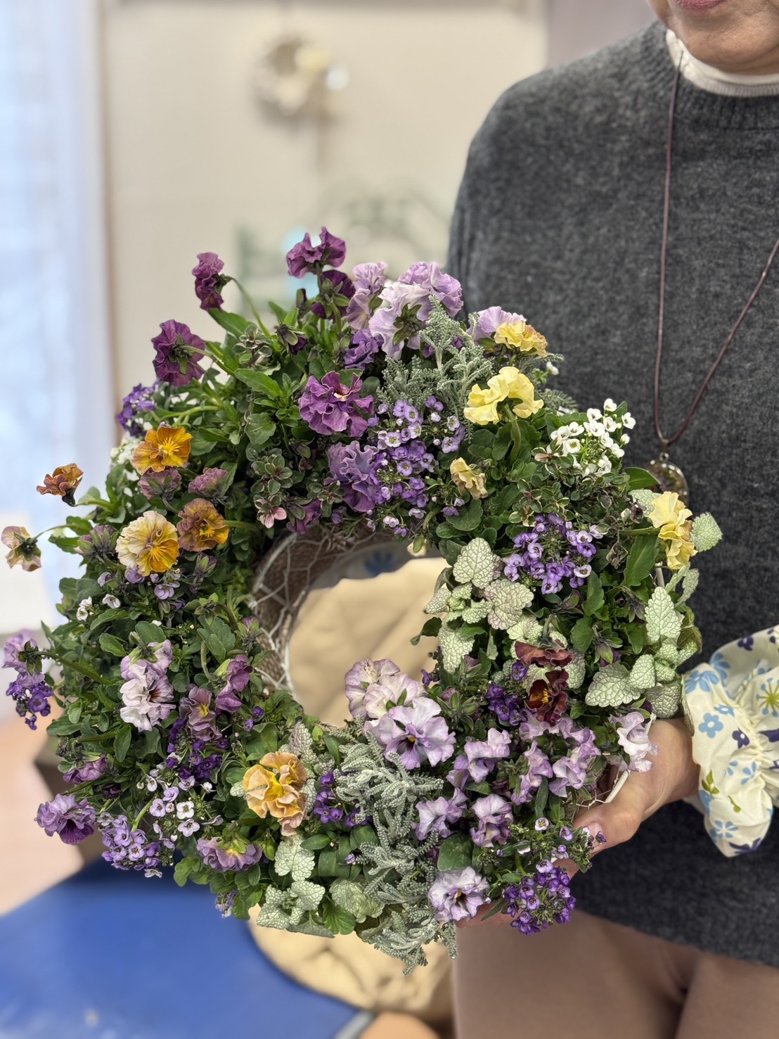 素敵なビオラのリースができました。丁寧なご指導で、楽しく作業ができました。 しばらくお花を楽しめます。また参加したいと思います。 (若槻様) 春色花材に囲まれる幸せ 前の記事 きらめく多肉で大満足リース 次の記事 お客様の声一覧